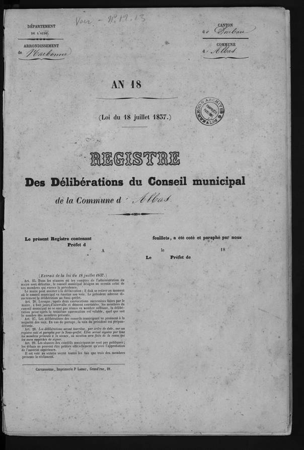 ARCHIVES d’ Les Archives Départementales de l’Aude ont scanné les archives des Conseils Municipaux de 1806 à 1950. Celles