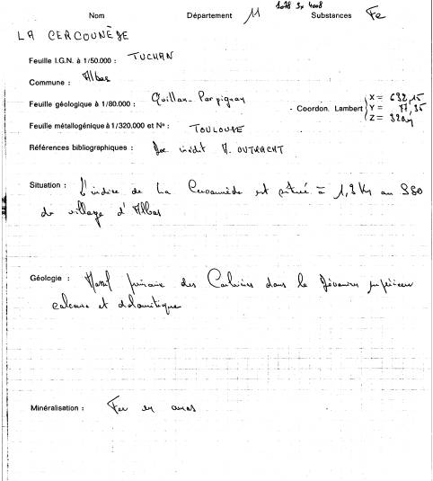 CarrabousCette mine serait en fait sur le territoire de CASCASTEL Fiche brgm