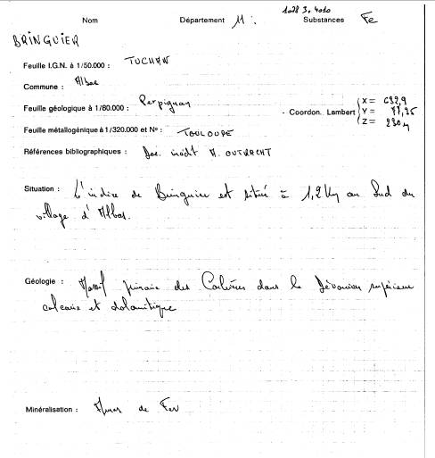 Sur cette page sont reprises les fiches brgm et les fiches de Mr G LANGLOIS concernant Les mines non encore identifiéesBringuier