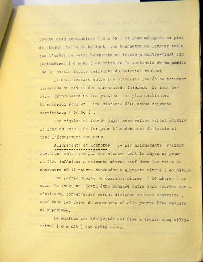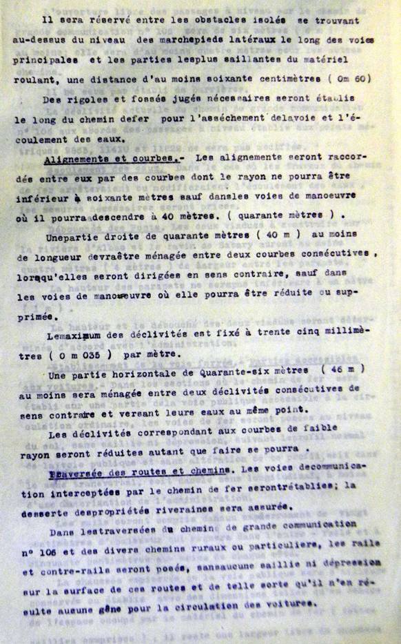 courbes de large rayon pour faciliter la vitesse, déclivité de 15‰ maximum