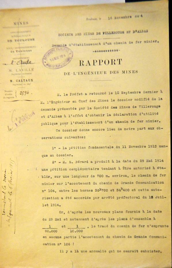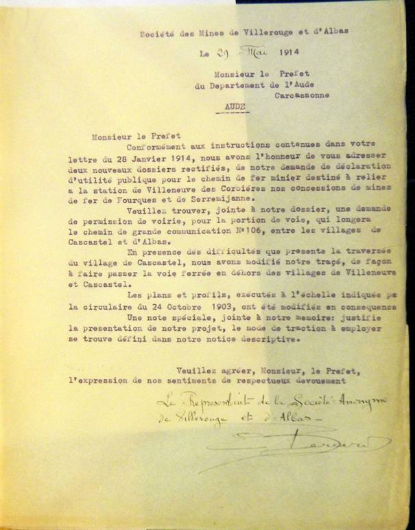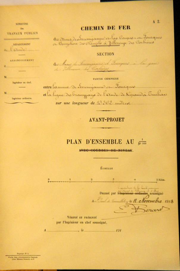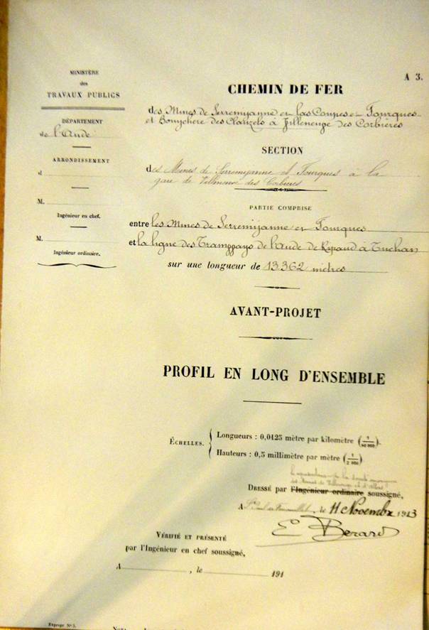 Le Chemin de fer minier (projet de 1913) reporté sur une carte actuelle