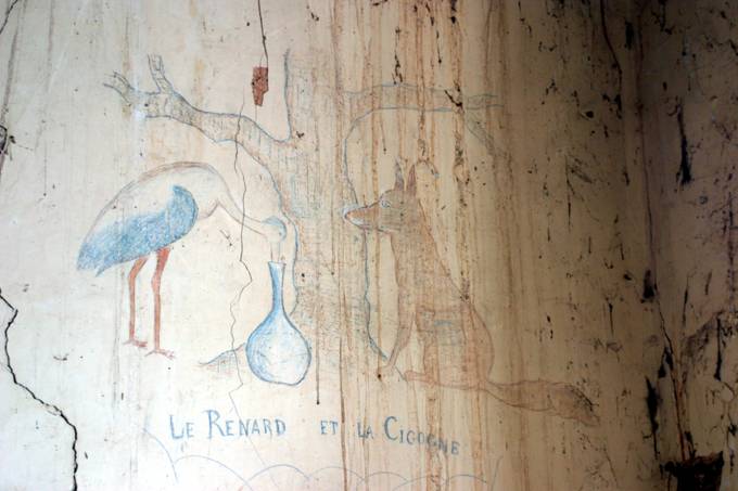 Le mari de l’institutrice (Mme ???) a égayé les murs avec les fables de La Fontaine :