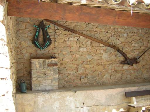 charrue en bois décorent le mur du fond.