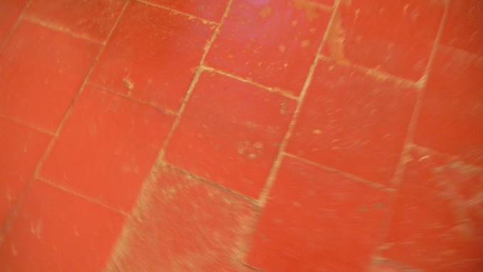 Sur le sol en carreau de terre on aperçoit une trace d’empreinte d’animal !!