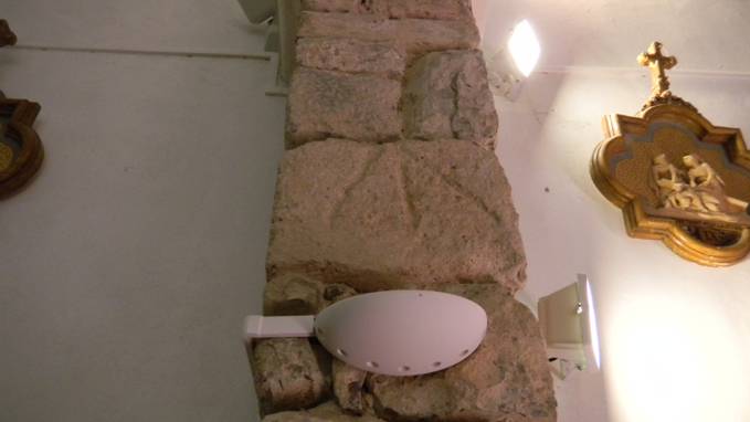 Lors de l’installation de la tapisserie, une pierre ancienne a été mise à jour :