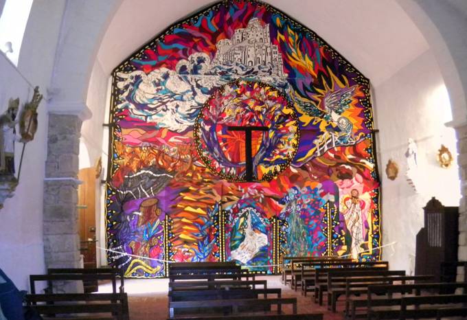 Dans le fond de l’église se trouve la monumentale tapisserie haute lisse « L’Allégorie du Souffle ».