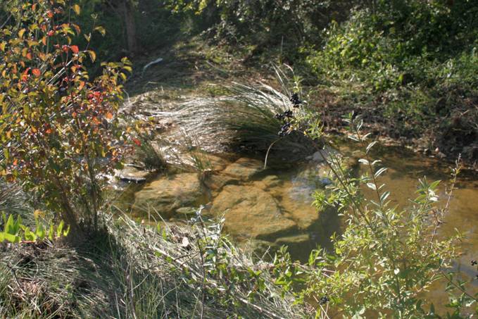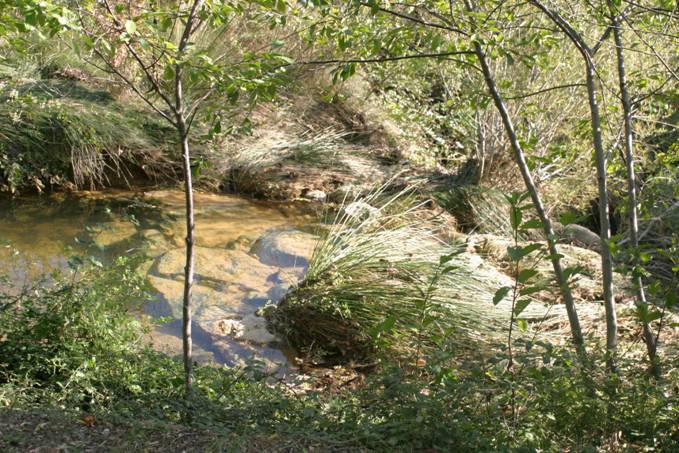 Le ruisseau du Prat coule au pied du castillou et limite les jardins au sud