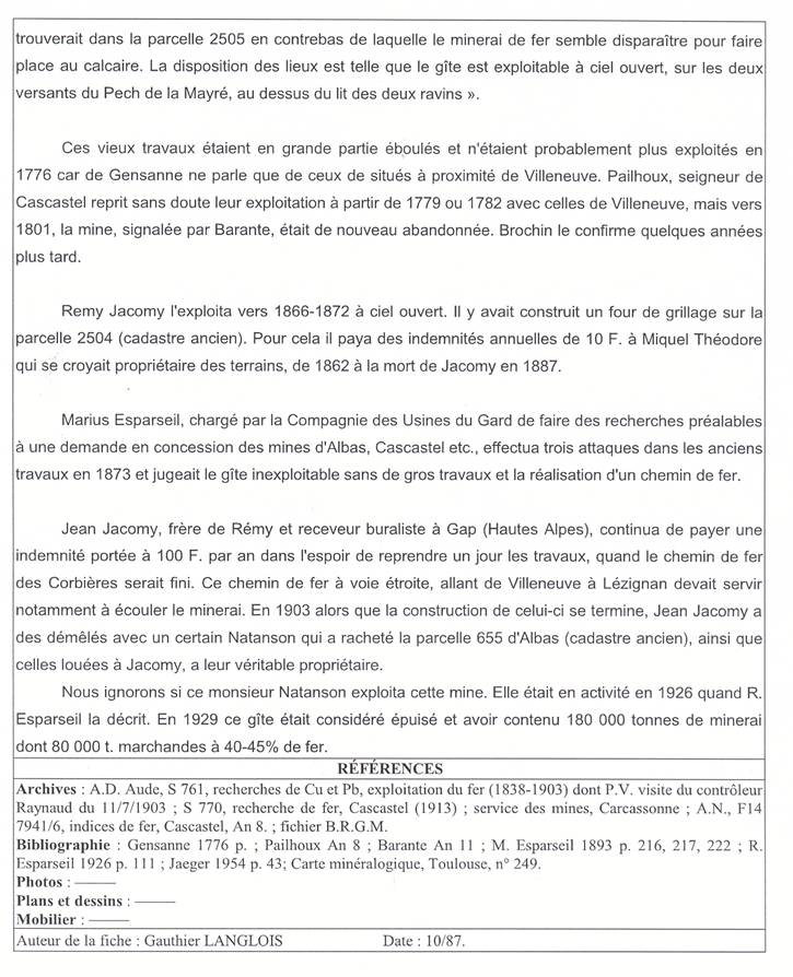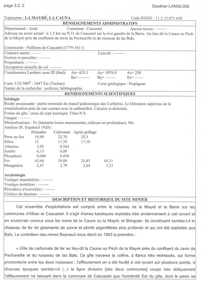Gisement de LA MAYRE appelé aussi LA CAUNA ou BRINGUIER