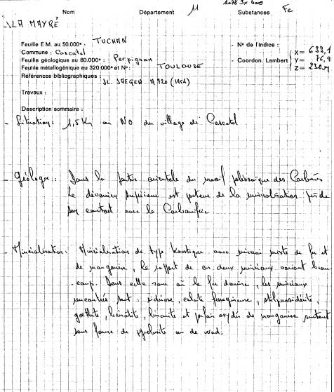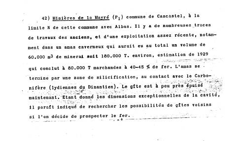 carbonates de fer. Ce gisement aurait contenu 60 000 m3 d'un minerai atteignant