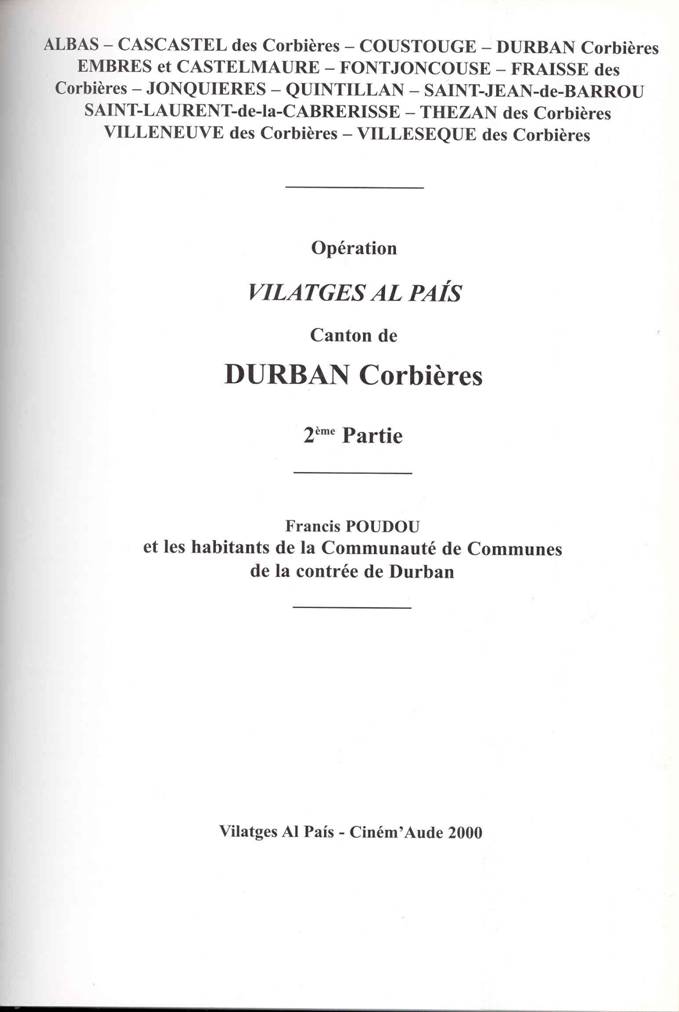 Ne manquez pas les 2 tomes consacrés au Canton de Durban dans les Corbières de l'Opération Villatges al Pais